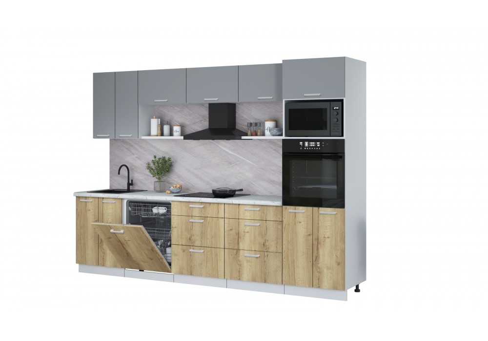 Кухонный гарнитур Мила Лайт 3.0-ПМ1 (Серебро/Дуб золотой/Серый каспий) фабрика Интерлиния