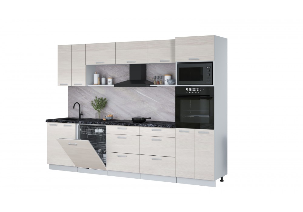 Кухонный гарнитур Мила Лайт 3.0-ПМ1 (Вудлайн кремовый/Вудлайн кремовый/Кастилло темный) фабрика Интерлиния