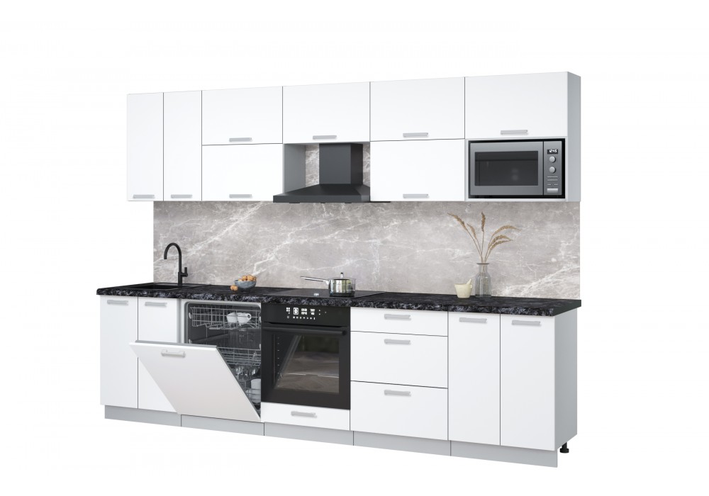 Кухонный гарнитур Мила Лайт 3,0-ПМ2 (Белый Платинум/Белый Платинум/Кастилло темный) фабрика Интерлиния