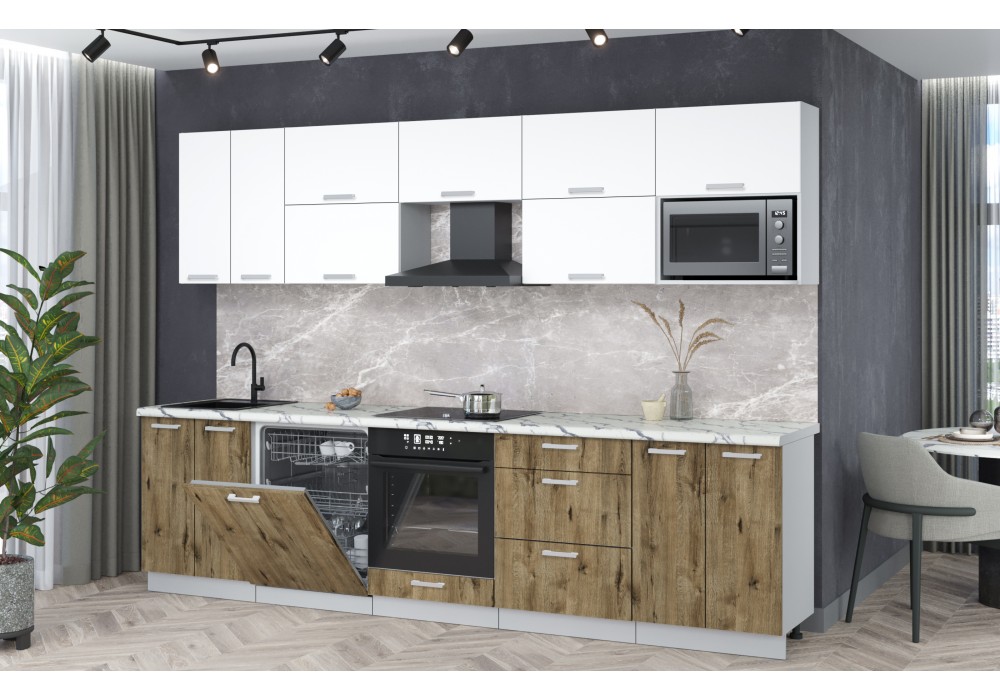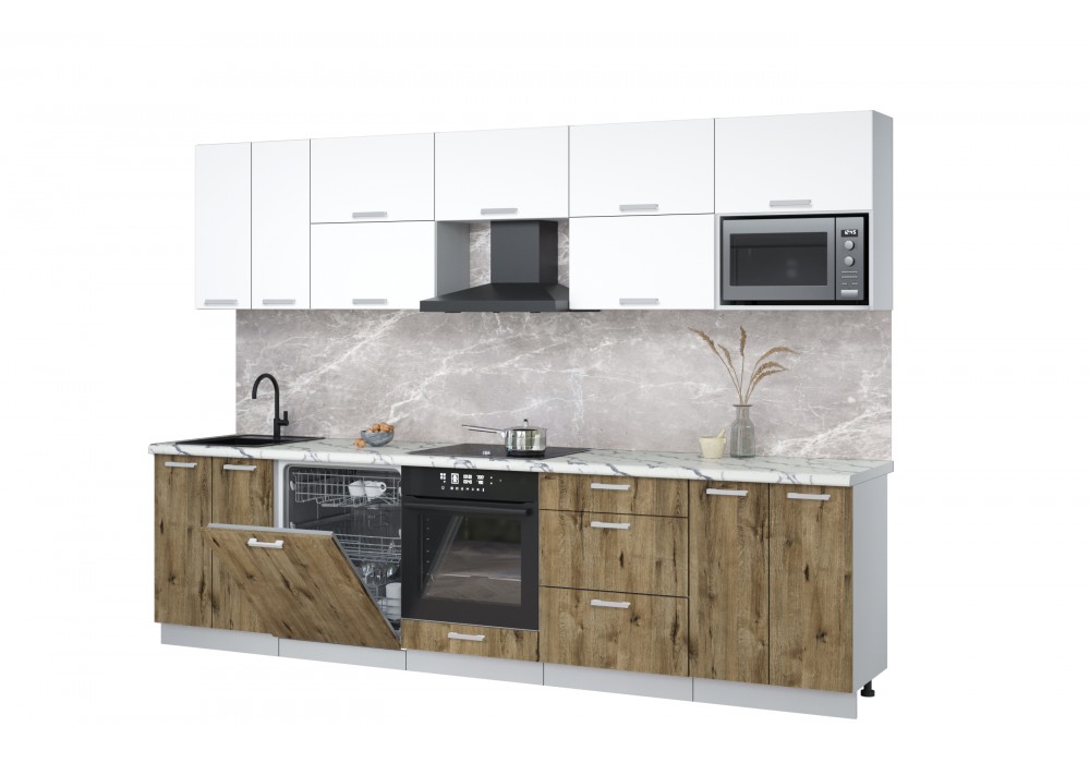 Кухонный гарнитур Мила Лайт 3,0-ПМ2 (Белый Платинум/Дуб веллингтон/Гранит белый) фабрика Интерлиния