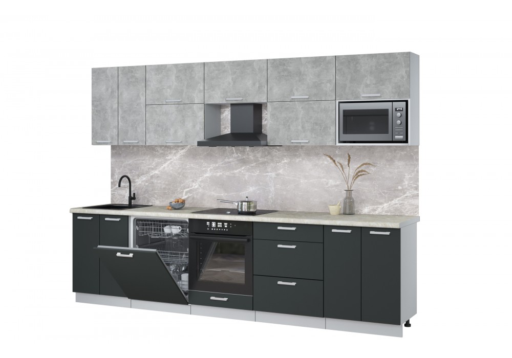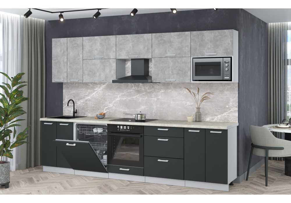 Кухонный гарнитур Мила Лайт 3,0-ПМ2 (Бетон/Антрацит/Опал светлый) фабрика Интерлиния