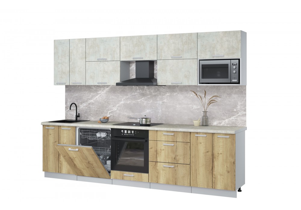 Кухонный гарнитур Мила Лайт 3,0-ПМ2 (Бетон лайт/Дуб золотой/Опал светлый) фабрика Интерлиния
