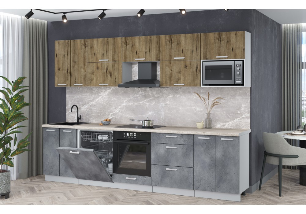 Кухонный гарнитур Мила Лайт 3,0-ПМ2 (Дуб веллингтон/Бетон портленд/Травертин) фабрика Интерлиния