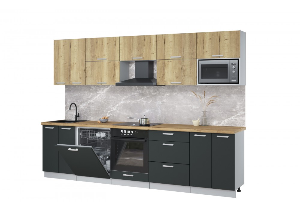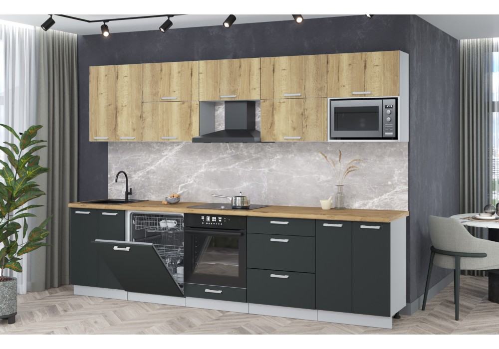 Кухонный гарнитур Мила Лайт 3,0-ПМ2 (Дуб золотой/Антрацит/Дуб бунратти) фабрика Интерлиния