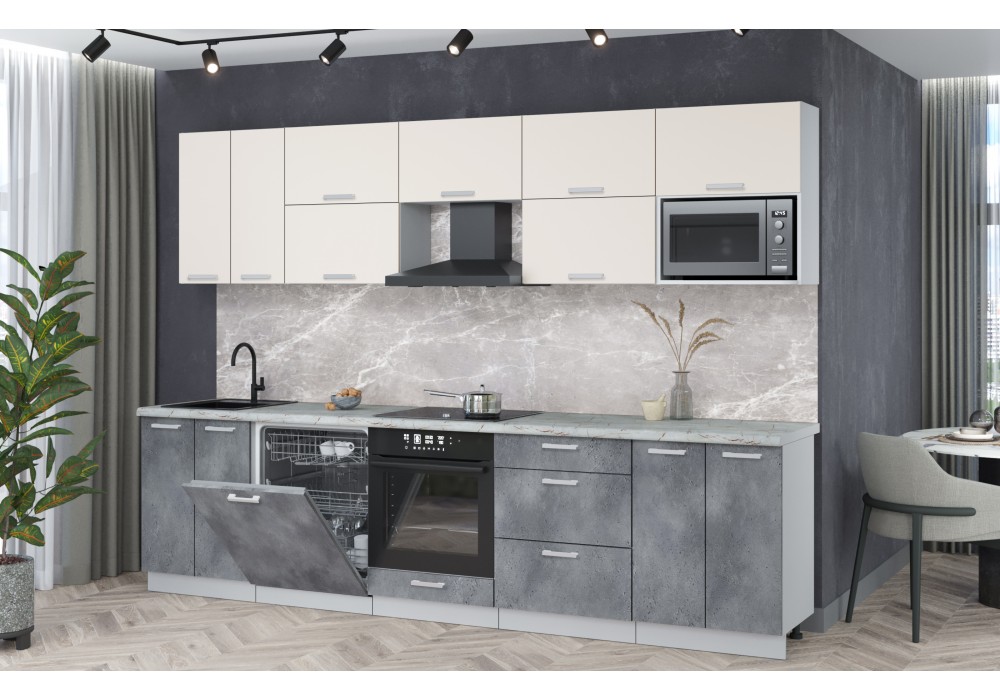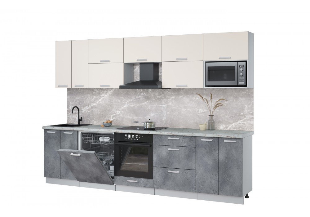 Кухонный гарнитур Мила Лайт 3,0-ПМ2 (Персидский жемчуг/Бетон портленд/Серый каспий) фабрика Интерлиния