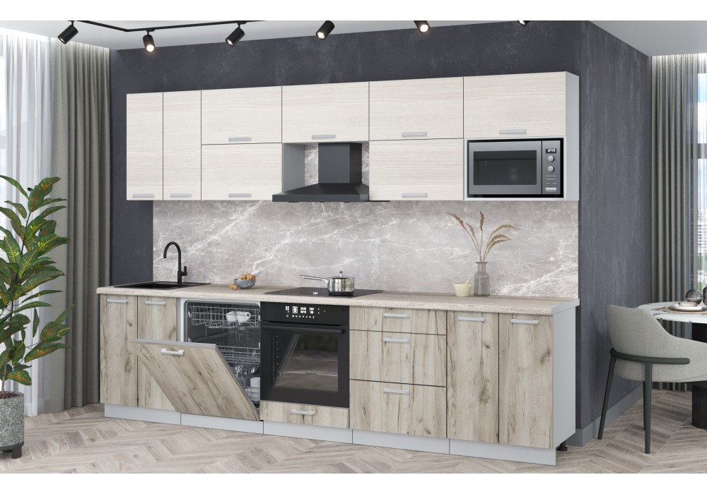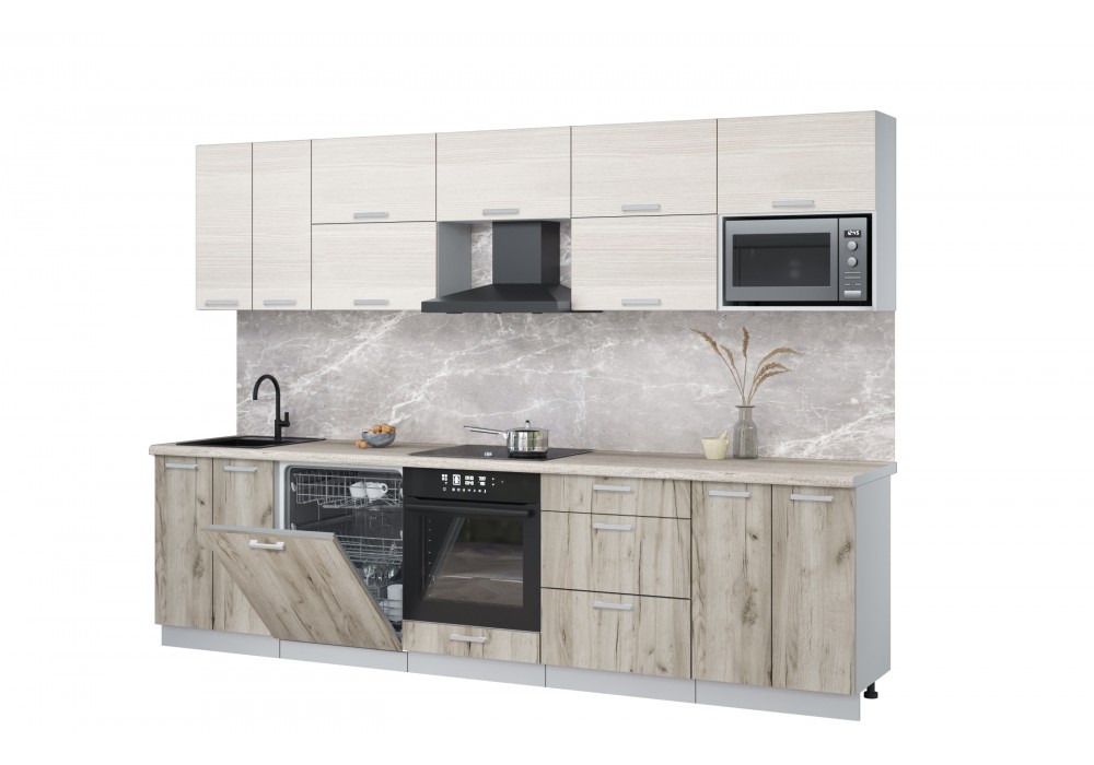 Кухонный гарнитур Мила Лайт 3,0-ПМ2 (Вудлайн кремовый/Дуб серый/Травертин) фабрика Интерлиния