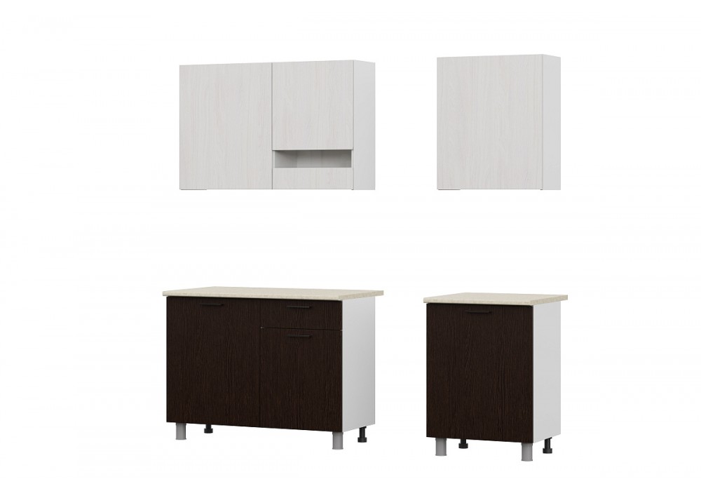 Гарнитур представляет собой набор из двух рабочих столов и двух навесных шкафов: