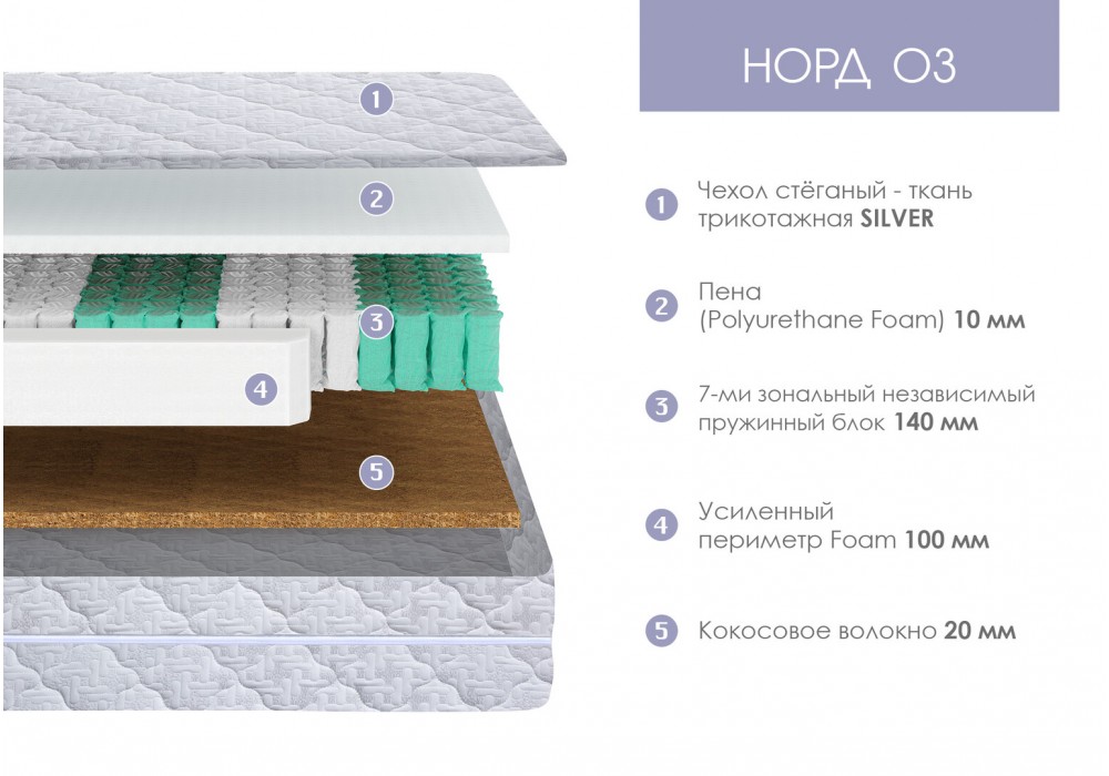 Матрас "Норд 03 Silver 3919" (средне-мягкий/жесткий) Территория Сна