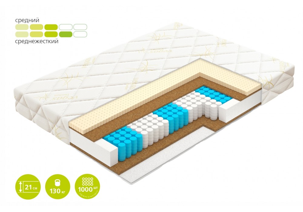 | Количество пружин в двуспальном матрасе | 1000 |
