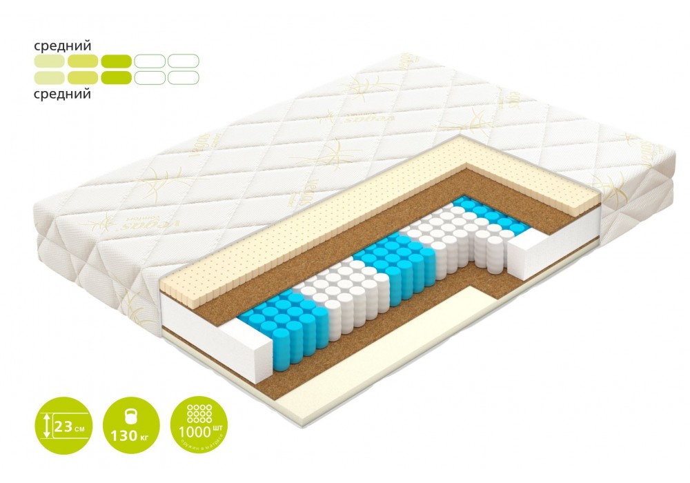 | Количество пружин в двуспальном матрасе | 1000 |