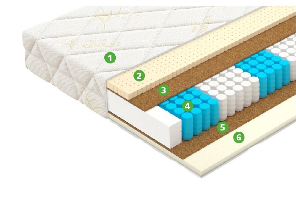 Блок независимых пружин с 7 зонами поддержки спящего принесёт истинное наслаждение от сна для тех, кому важен выраженный ортопедический эффект. Точечная эластичность блока усилена благодаря наличию 7 зон жёсткости, равномерно распределенных по всей длине матраса. Диаметр пружины 60 мм, высота 140 мм. - Кокосовая койра5