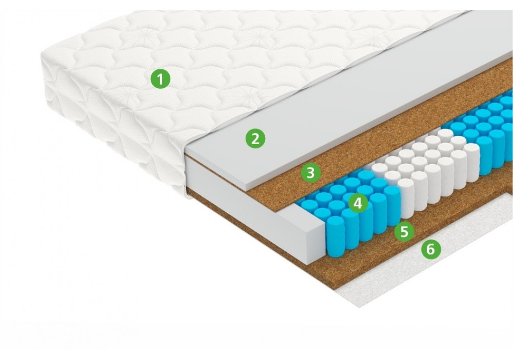 Натуральный материал, состоящий из спрессованных волокон кокосового ореха. Слои из прочной и долговечной кокосовой койры используются для придания матрасу дополнительной жесткости. - Smartpocket Pro 5-Zone4