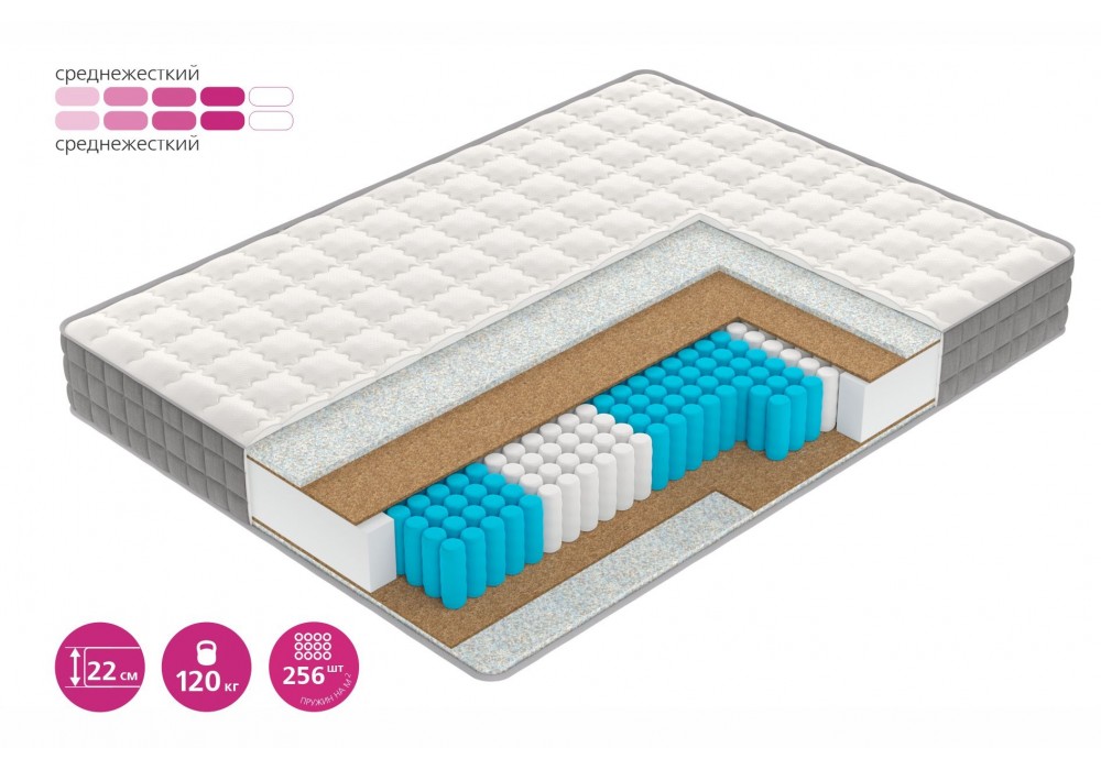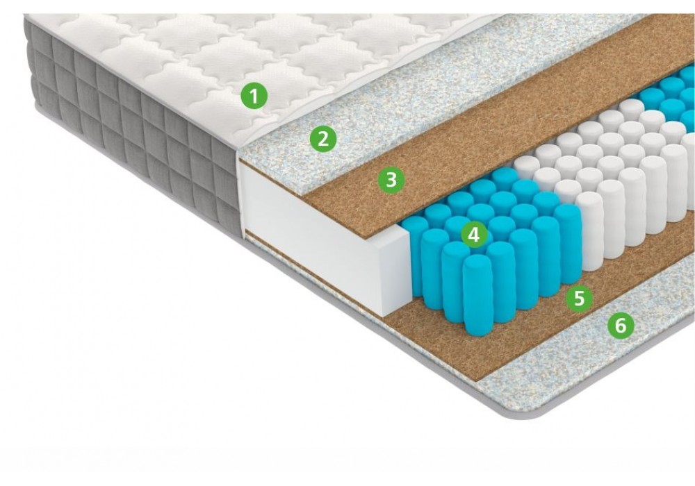 Блок независимых пружин плотностью 256 шт/м2. Пять выраженных зон поддержки обеспечивают больший ортопедический эффект, равномерное распределение нагрузки на матрас и дарят комфорт во время сна. - Кокосовая койра5