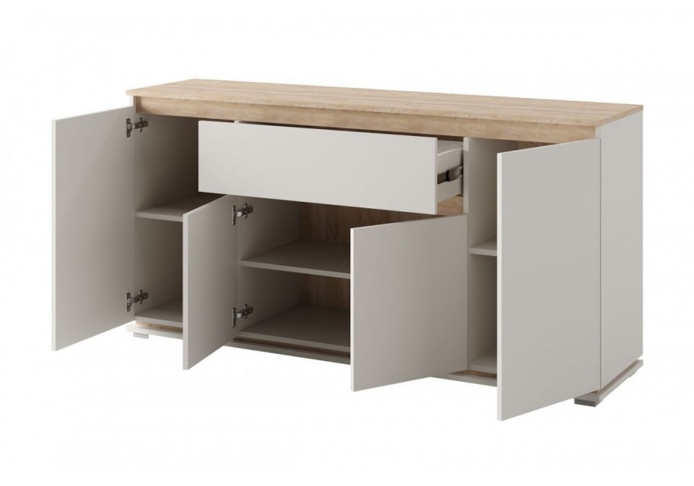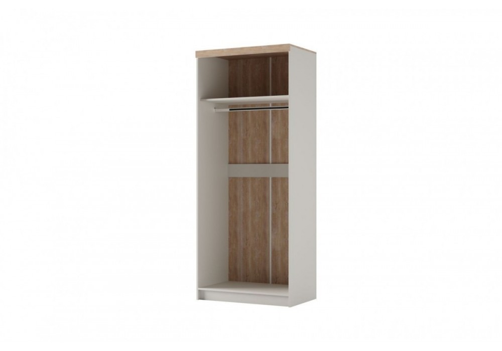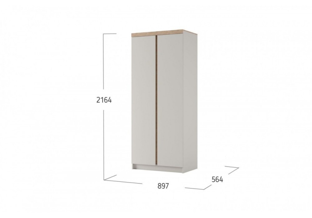 Фасады и корпус модульной гостиной ЮТА выполнены из ЛДСП в цвете Персидский жемчуг и Дуб Торонто. Стиль коллекции задает минимализм и функциональность.