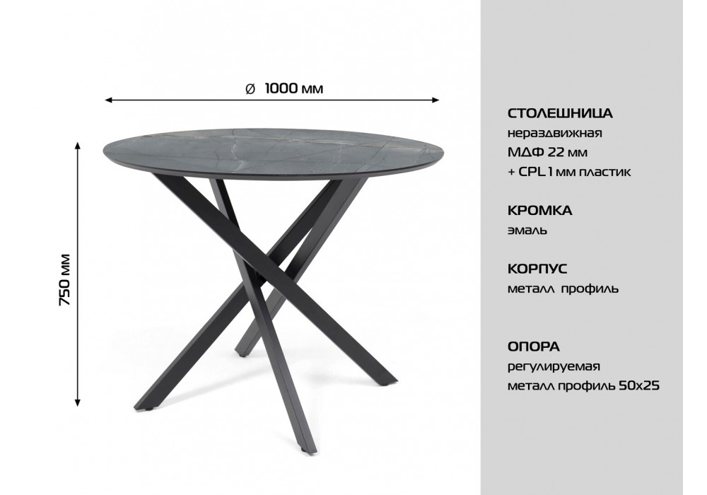 Обеденный стол Норд D1000 МДФ+пластик кромка эмаль (пиетра грей)