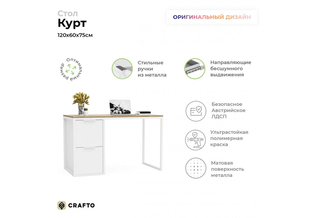 Письменный стол Crafto Курт Лофт 01 (белый дуб) 1200 600 750