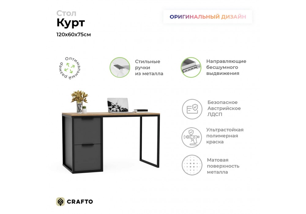 Письменный стол Crafto Курт Лофт 02 (графит дуб) 1200 600 750