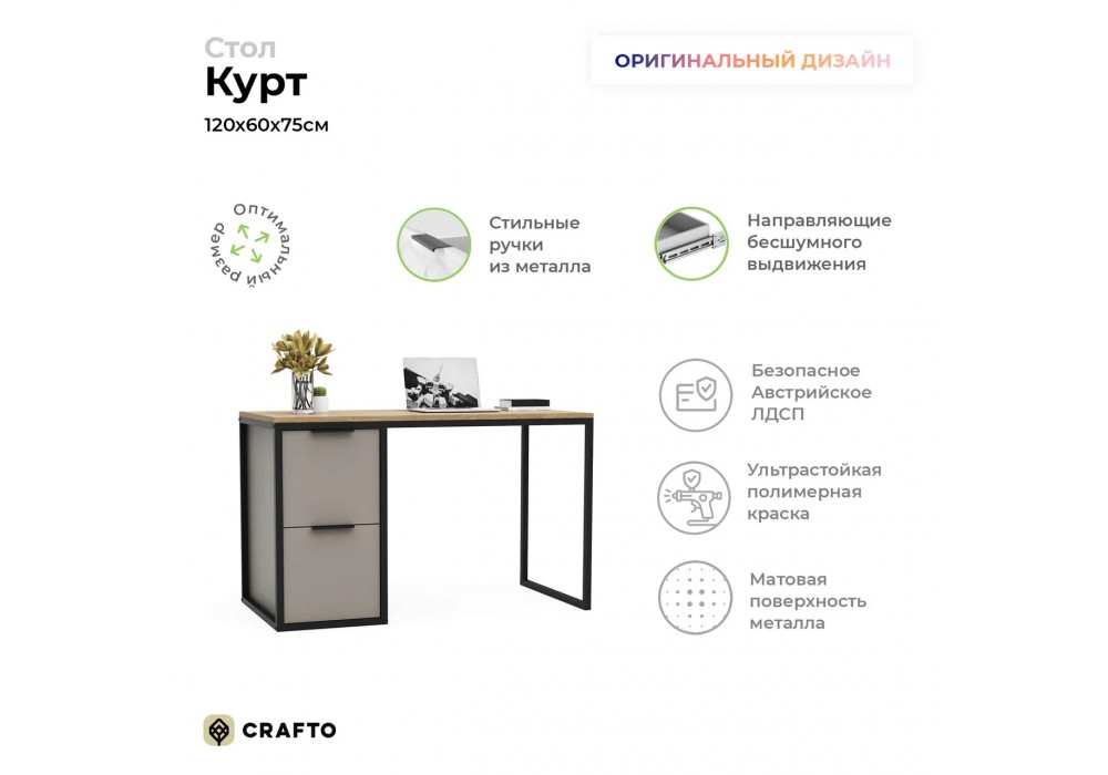 Письменный стол Crafto Курт Лофт 03 (латте дуб) 1200 600 750