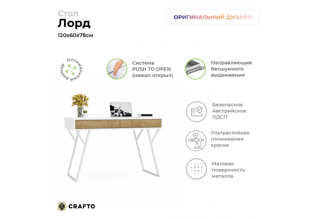Письменный стол Crafto Лорд Лофт 01 (белый дуб) 1200 600 780