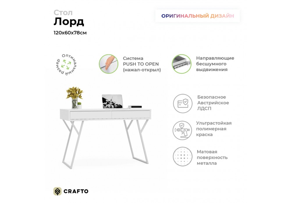 Письменный стол Crafto Лорд Лофт 04 (белый)1200 600 780