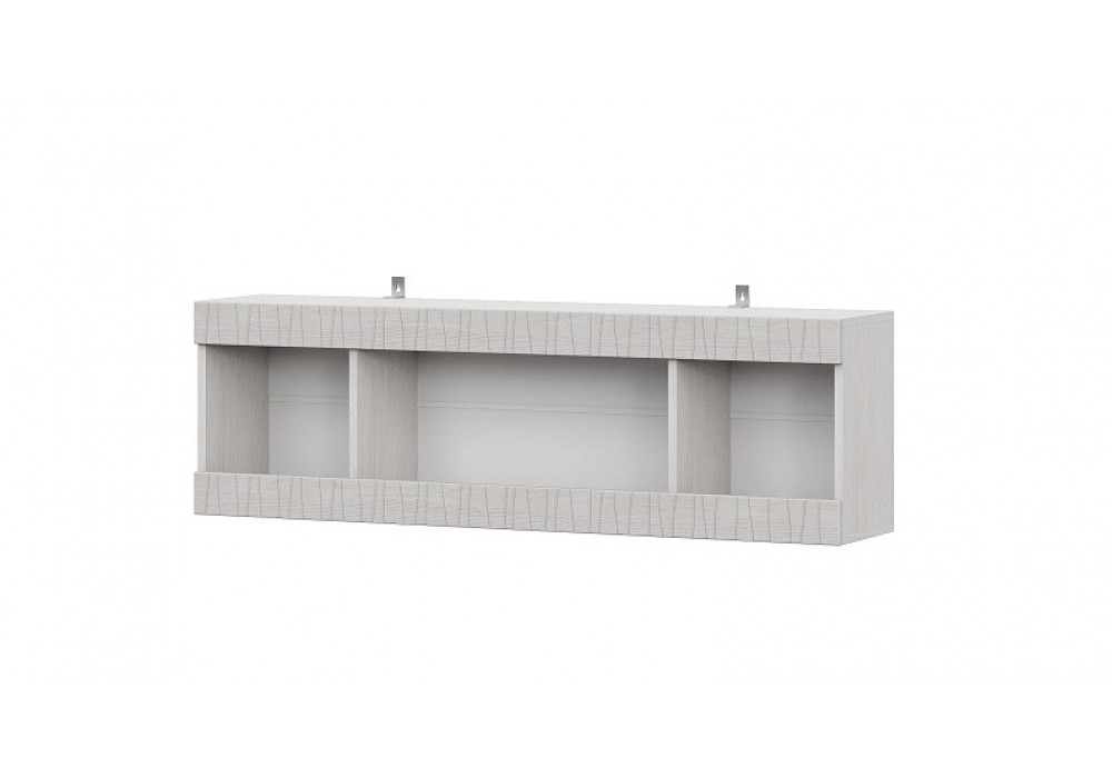Модуль представляет собой открытую полку разделенную вертикальными перегородками на 3 отсека для хранения. По бокам два отделения шириной 304 мм. В середине отделение шириной 628 мм. Полка навешивается на стену с помощью нерегулируемых угловых навесов или устанавливается между модулями на межсекционные стяжки (в комплекте). Крепеж в стену приобретается покупателем самостоятельно, исходя из материала стен.
