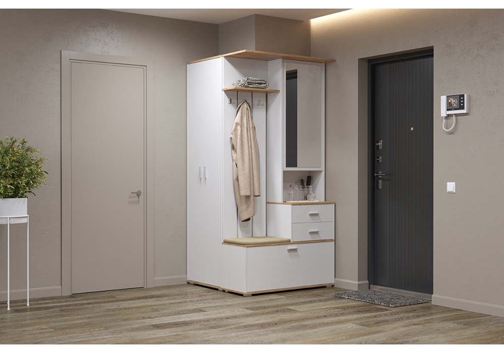 Прихожая Антре со шкафом (белый/дуб вотан/ткань велюр велутто кремовый 18) фабрика Олмеко