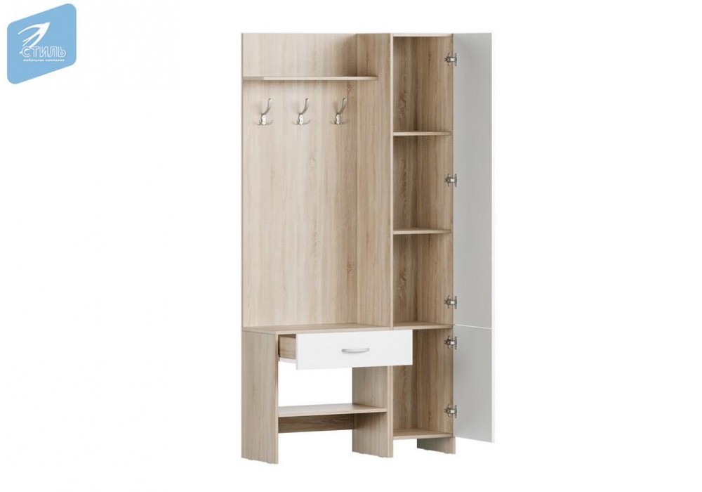 Сочетание цвета Дуб Сонома светлый / Белый гладкий органично впишется в дизайн вашей прихожей.