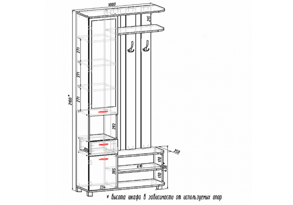 каркас/фасад – ламинированная ДСП, кромка - ПВХ 0,45÷1мм, ручки – металл, опоры - пластик