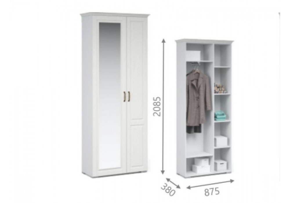 Шкаф 2д (зеркало) Лацио (Белый/белое дерево) фабрика Империал