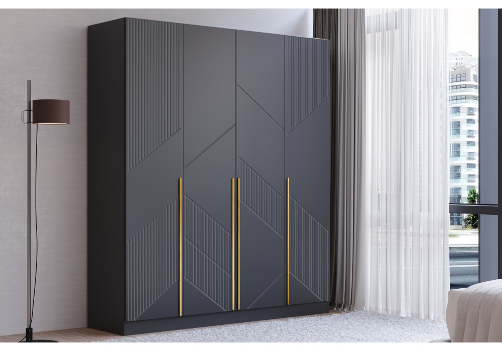 Шкаф 4-x cтворчатый Феникс ФР№6 графит\графит софт (ручки золото)
