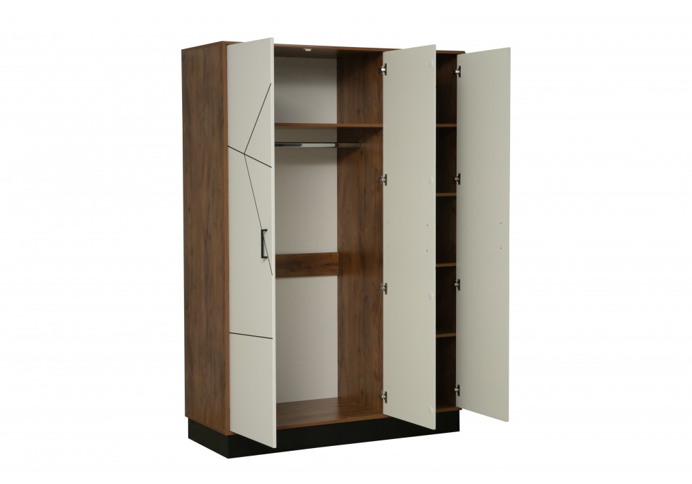 Шкаф для одежды 54.12 Гамма (3-х дв.) (таксония / черный / ПВХ белый) Фабрика Олмеко