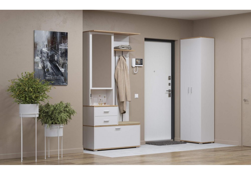 Шкаф для прихожей 65.07 Антре (белый/дуб вотан) Фабрика Олмеко