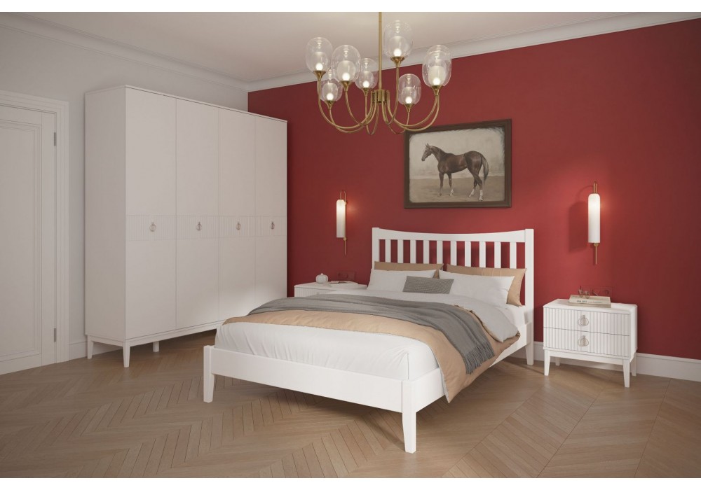 Фасады выполнены из МДФ и покрыты эмалью белого цвета. Корпус ЛДСП в цвете белый снег. Стиль коллекции задает модная вертикальная фрезеровка фасадов и оригинальная фурнитура