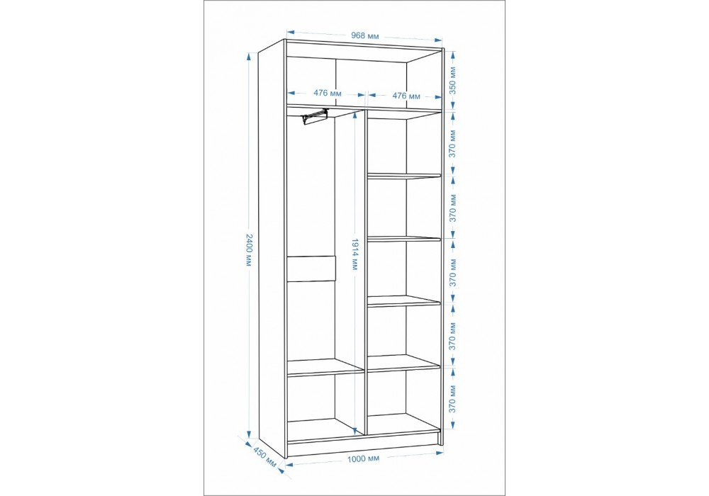 Шкаф-гармошка Лайн ЛН-1D.450.01(2Z) (Гикори Кингстон) фабрика ЕвваСерия изделий мебели «Лайн» - ..