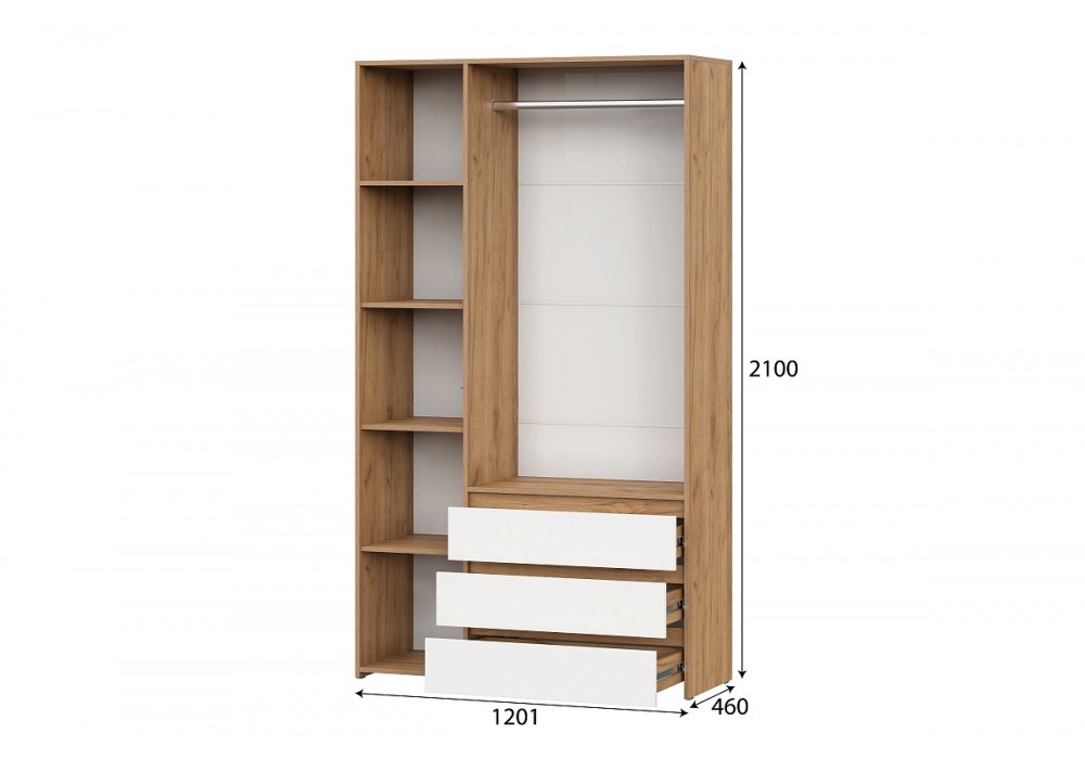 Шкаф комбинированный 3-х ств. NN Мебель (МС Некст К) Дуб Золотой/Белый