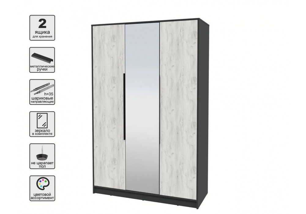 Шкаф комбинированный Концепт КТ-Ш3(З) (Антрацит/Дуб белый) фабрика Интерлиния