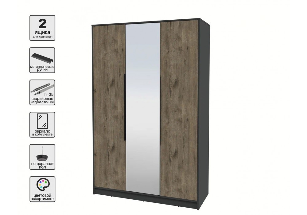Шкаф комбинированный Концепт КТ-Ш3(З) (Антрацит/Дуб веллингтон) фабрика Интерлиния