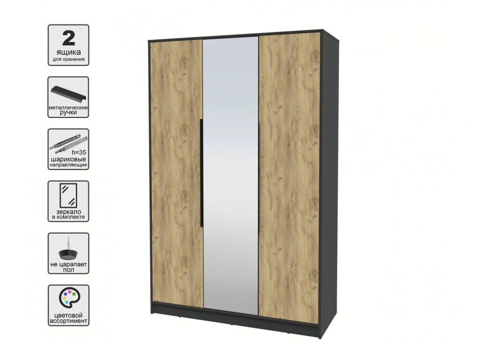 Шкаф комбинированный Концепт КТ-Ш3(З) (Антрацит/Дуб золотой) фабрика Интерлиния