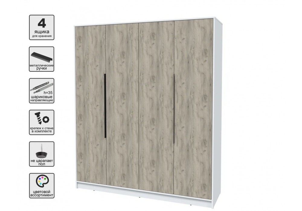 Шкаф комбинированный Концепт КТ-Ш4 (Белый/Дуб серый) фабрика Интерлиния