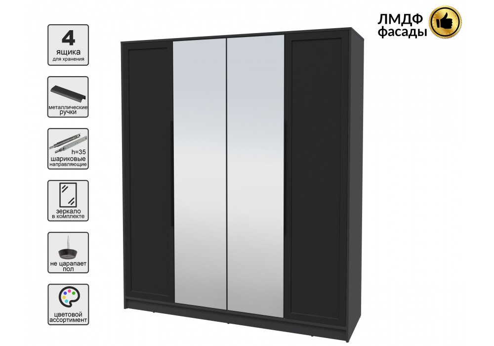 Шкаф комбинированный Концепт КТ-Ш4(З) (Антрацит/Черный) фабрика Интерлиния Габаритные размеры шкафа: 21..