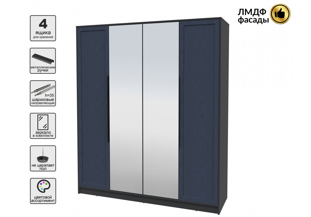 Шкаф комбинированный Концепт Тренд КТ-Ш4 (Антрацит/Индиго) фабрика Интерлиния