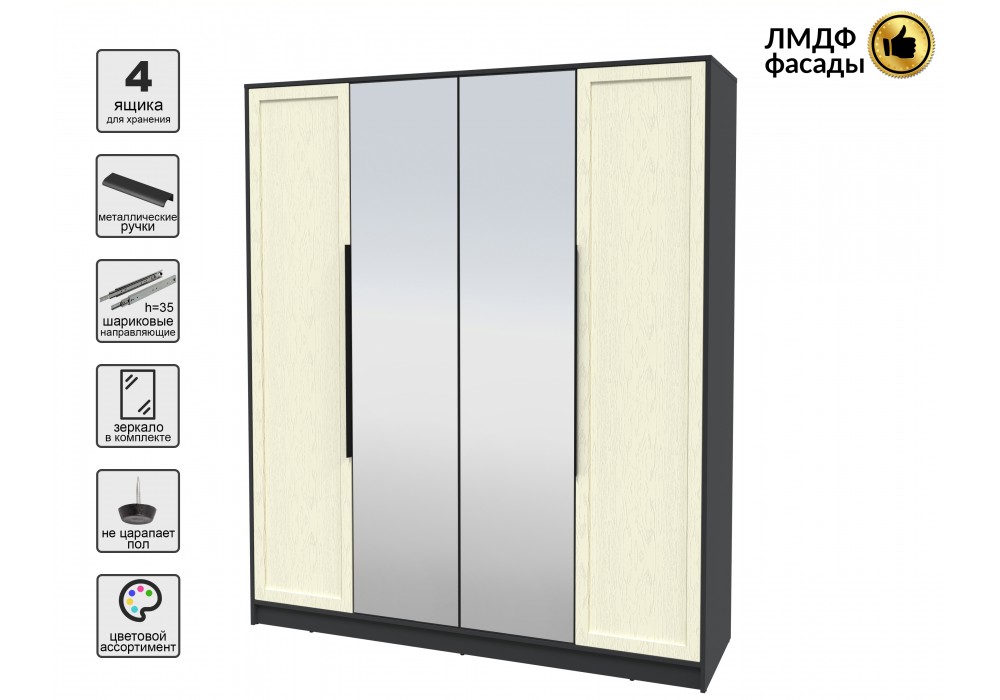 Шкаф комбинированный Концепт КТ-Ш4(З) (Антрацит/Персидский жемчуг) фабрика Интерлиния Габаритные размер..