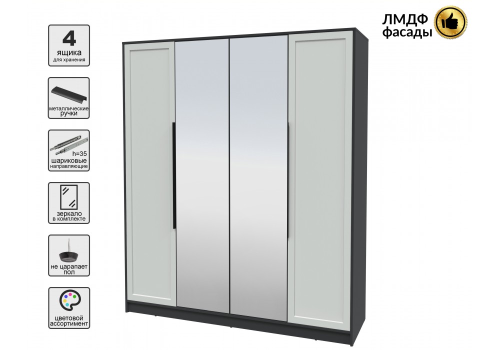 Шкаф комбинированный Концепт КТ-Ш4(З) (Антрацит/Белый) фабрика Интерлиния Габаритные размеры шкафа: 212..