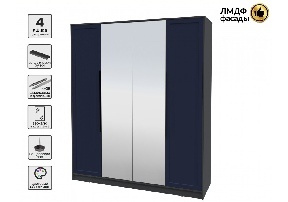 Шкаф комбинированный Концепт КТ-Ш4(З) Тренд (Антрацит/Индиго) фабрика Интерлиния