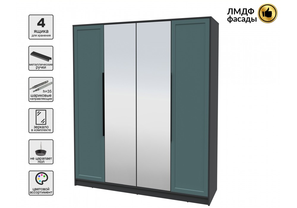 Шкаф комбинированный Концепт КТ-Ш4(З) Тренд (Антрацит/Изумруд) фабрика Интерлиния Фасад ЛМДФ с фрезеров..