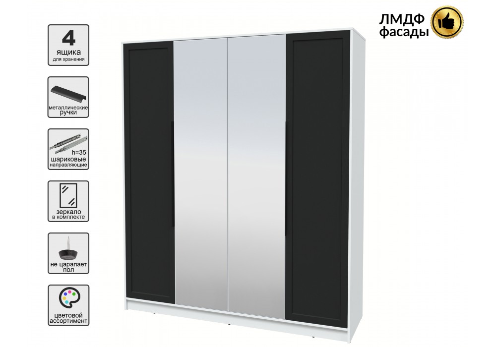 Шкаф комбинированный Концепт КТ-Ш4(З) Тренд (Белый Платинум/Черный) фабрика Интерлиния