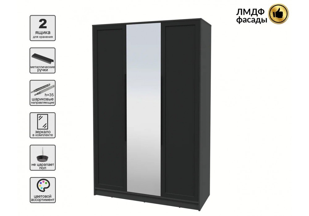 Шкаф комбинированный Концепт Тренд КТ-Ш3(З) (Антрацит/Черный) фабрика Интерлиния