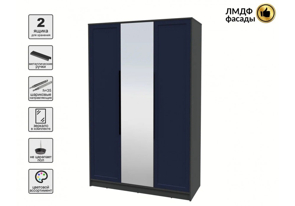 Шкаф комбинированный Концепт Тренд КТ-Ш3(З) (Антрацит/Индиго) фабрика Интерлиния