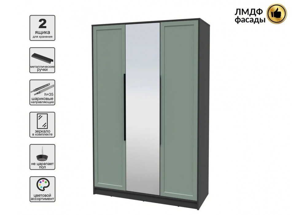 Шкаф комбинированный Концепт Тренд КТ-Ш3(З) (Антрацит/Мята) фабрика Интерлиния