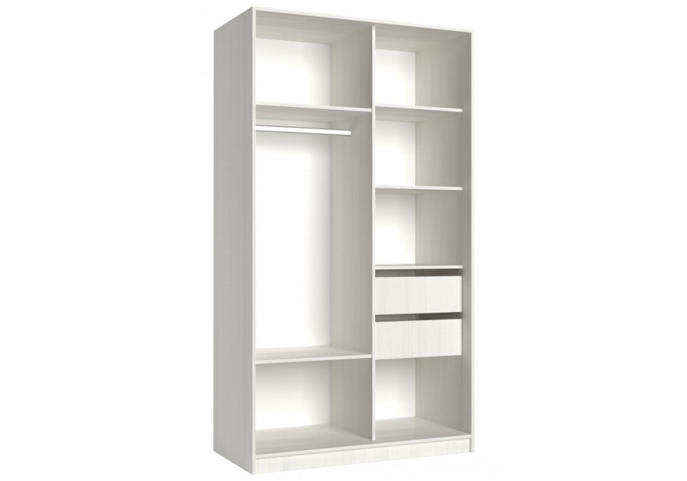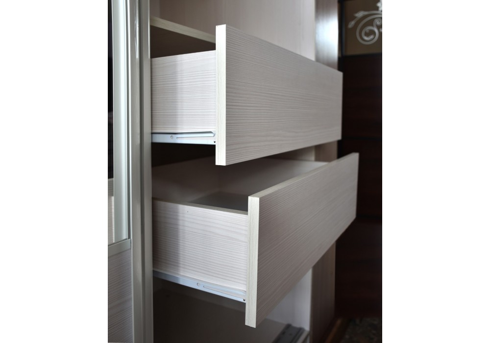 Описание изделия:Изделие представляет собой комбинированный шкаф-купе. Стандартная глубина шкафа в 60 см позволяет разместить одежду на плечиках без помех для открытия раздвижных дверей, а полки создают вместительные ниши для крупных вещей, таких как постельное бельё, пледы, одеяла и подушки. Система раздвижных дверей "Универсал" обеспечивает плавный ход дверей, а алюминиевый каркас гарантирует надёжность и долговечность. Шкаф разделен вертикальной перегородкой на два отделения: платяное и бельевое отделение. Платяное отделение комплектуется одной верхней и нижней полками и металлической штангой, бельевое - тремя полками и двумя выдвижными ящиками.